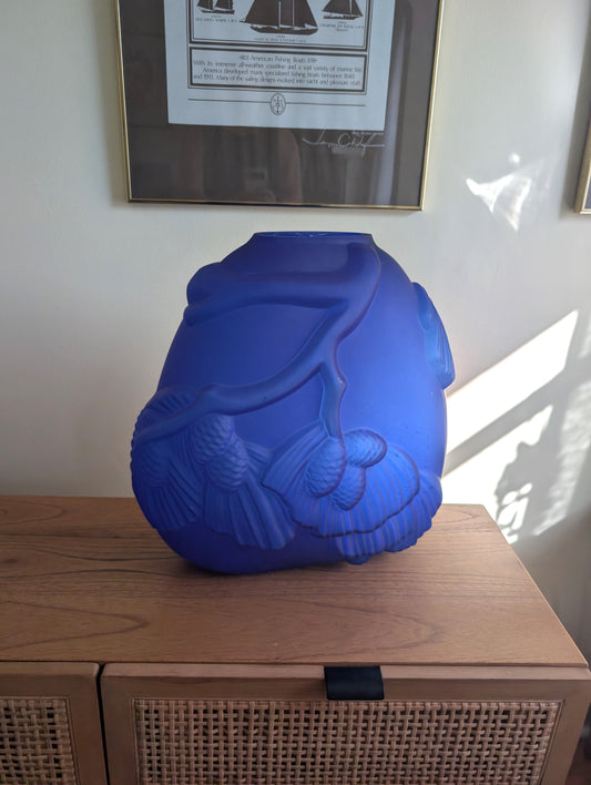 Large Cobalt Blue Balos Mouth Blown Pinecone Design Glass Vase