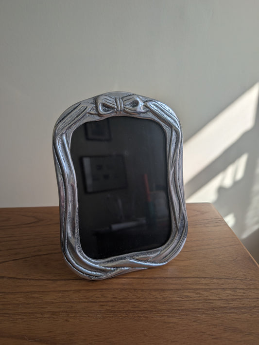 Vintage Silver Plated Picture Frame with Bow and Wooden Back