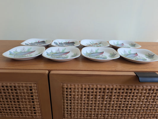 Rare Set of 8 Crown Staffordshire Fish Themed Bread Plates