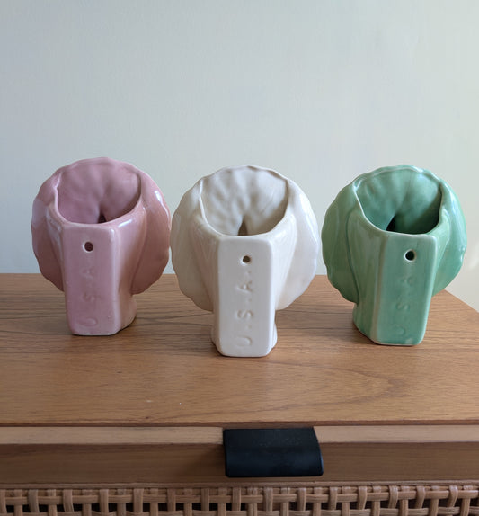 Set of 3 Vintage Ceramic Peacock Wall Planters Made in USA Pink Green and White