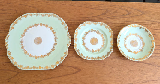 Light Green and Gold Set by Stanley Bone China Service for 12