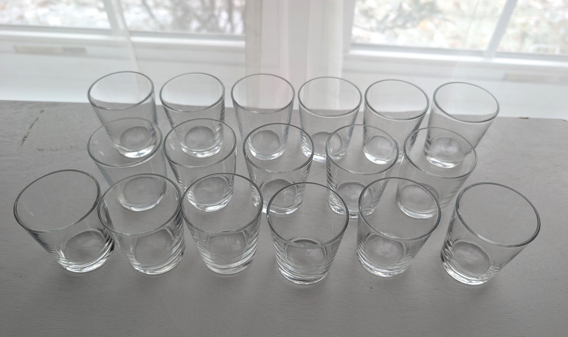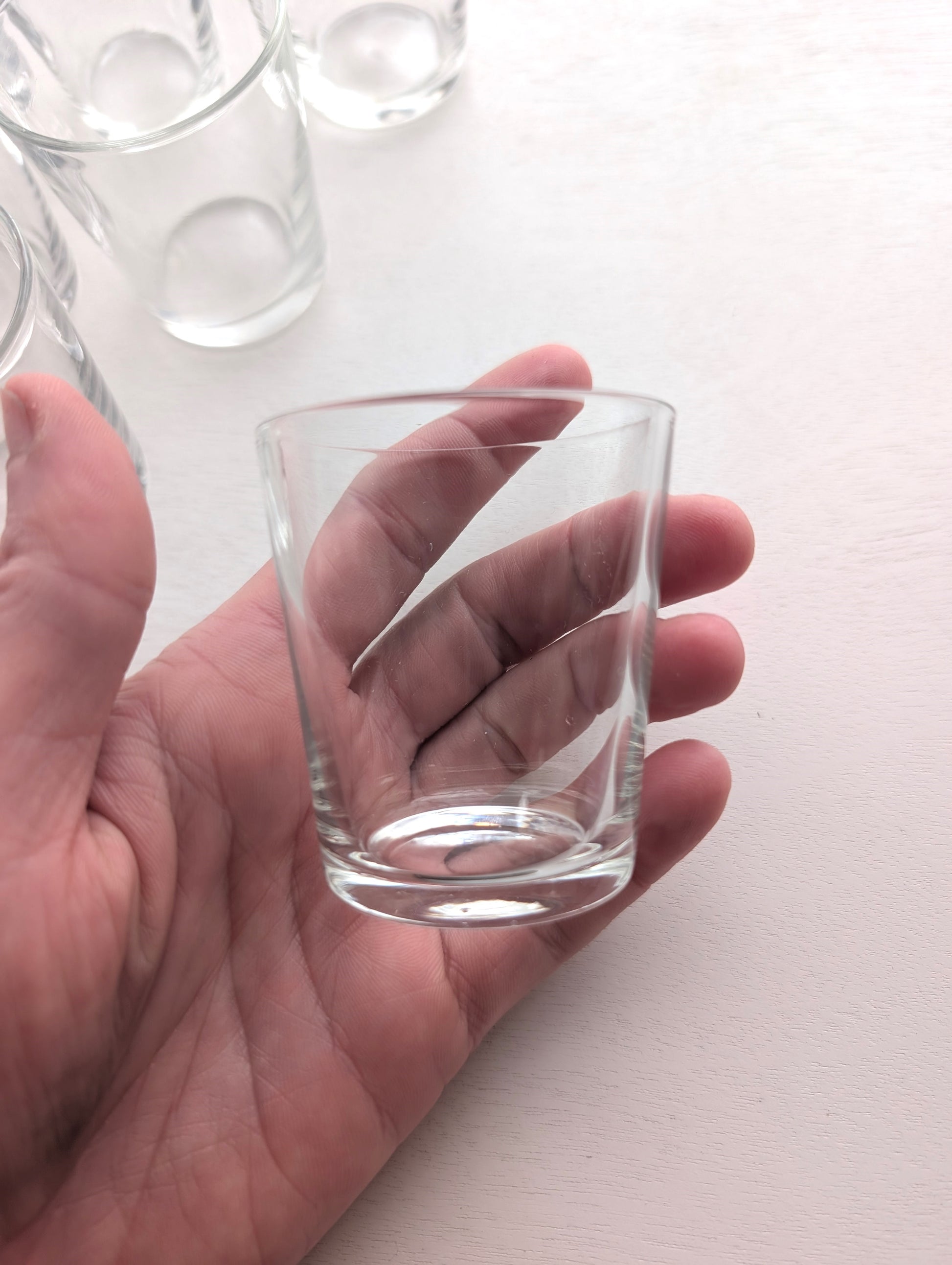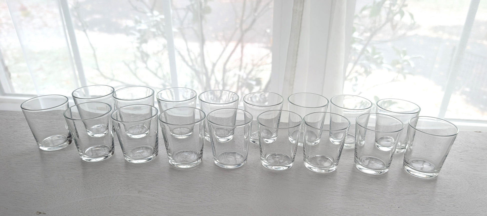 Set of 17 fantastic little cordial glasses. Also can be used as shot glasses. These clear glasses are handmade. There are waves in the glass and no seams. No chips or cracks