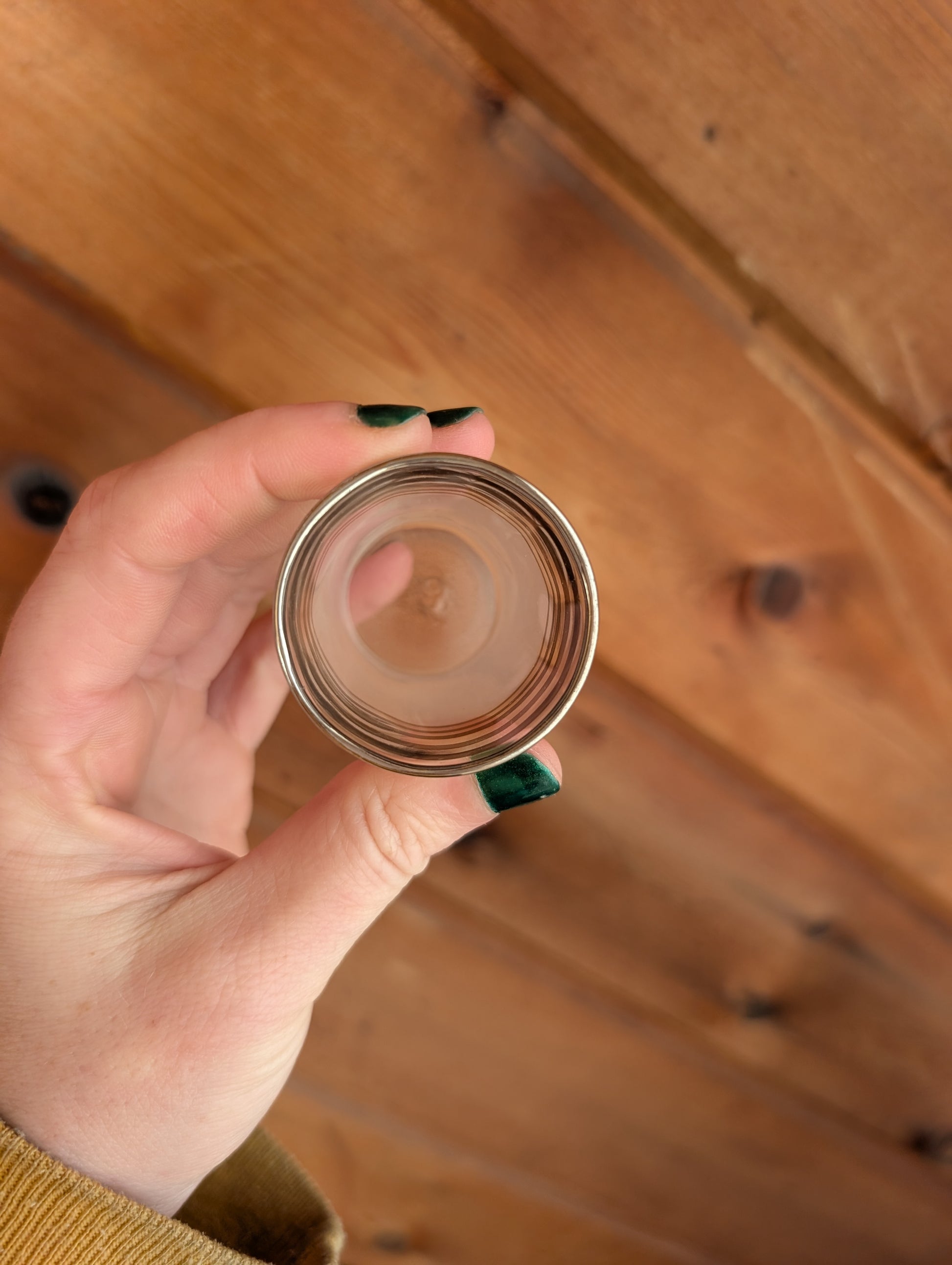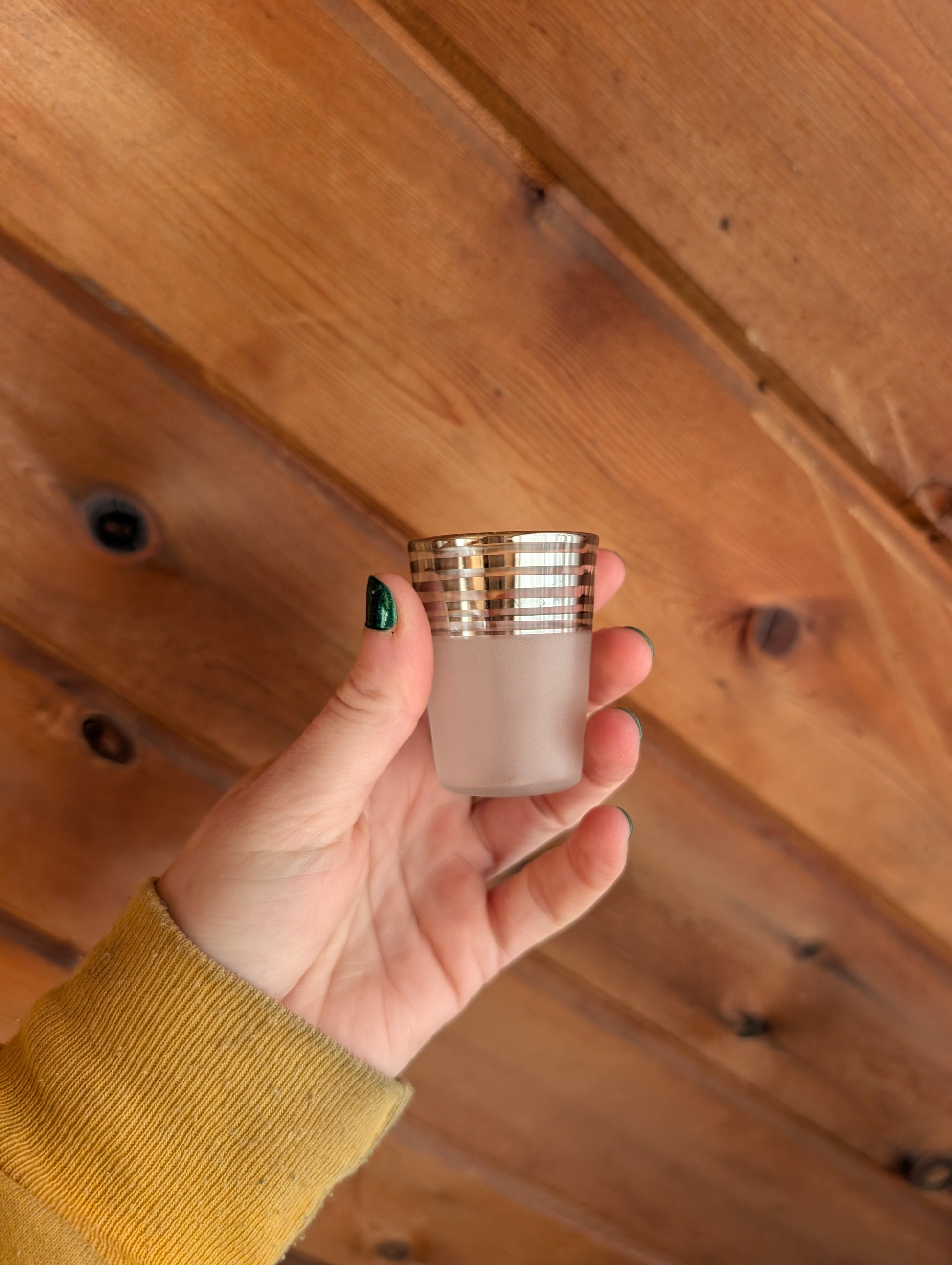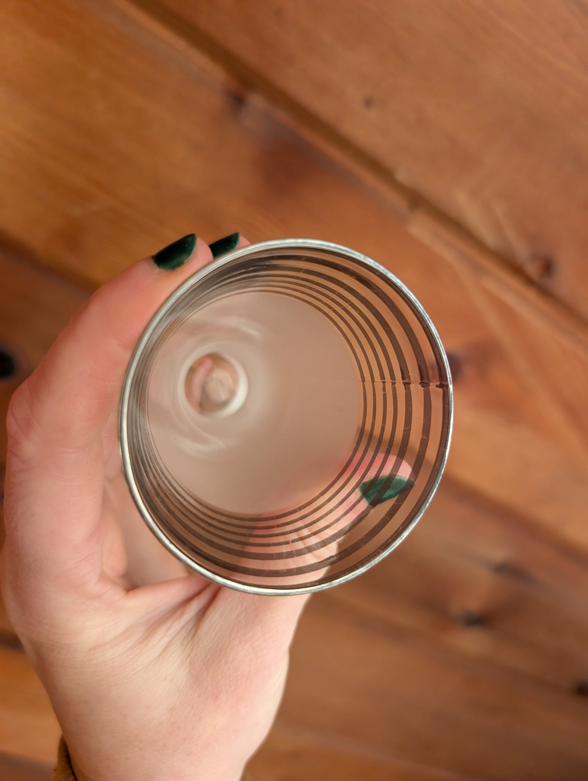 8 Vintage MCM Frosted and Chrome Stripe Cocktail Glasses with Bonus Shot Glasses