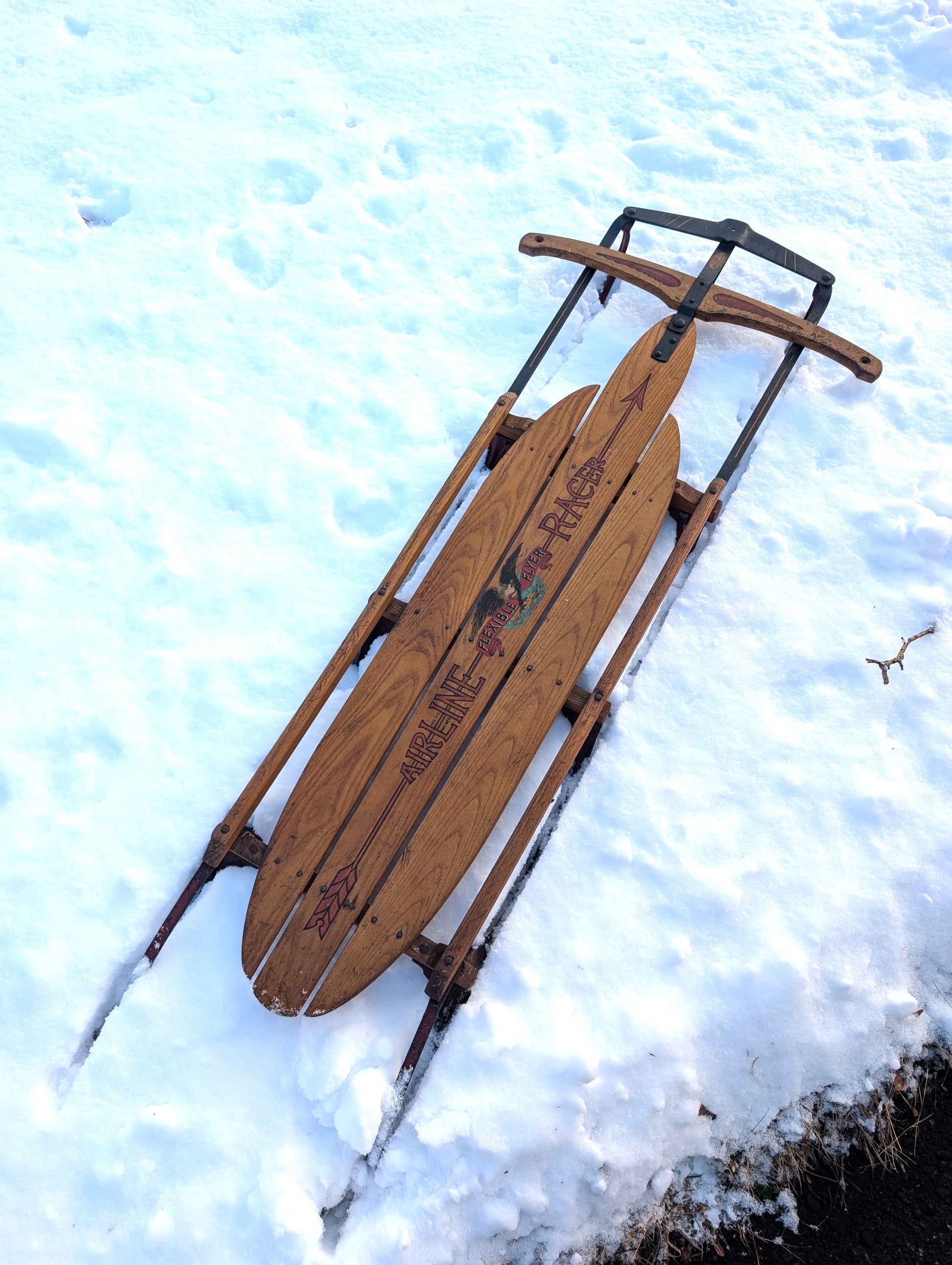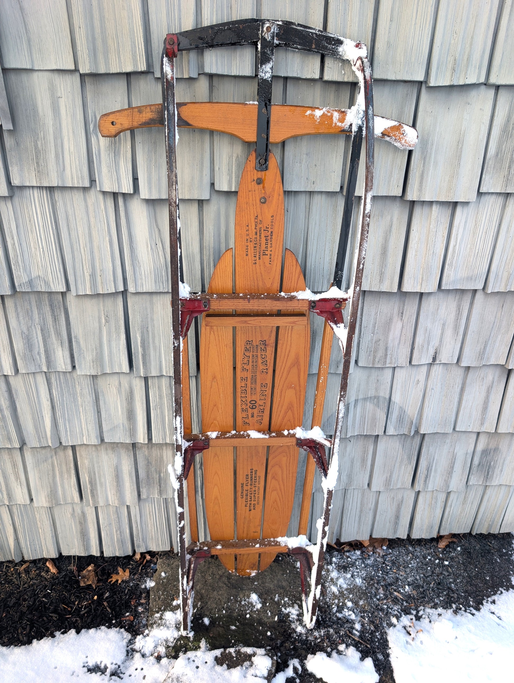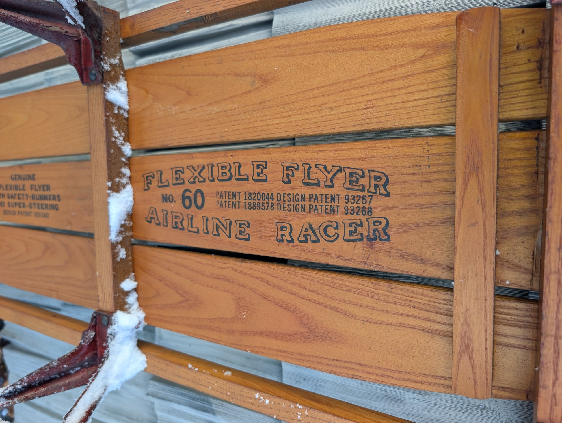 Fantastic vintage Airline Flexible Flyer No 60 sled. Made By SL Allen & Co with Safety Runners. All the paint is in excellent and vibrant condition.