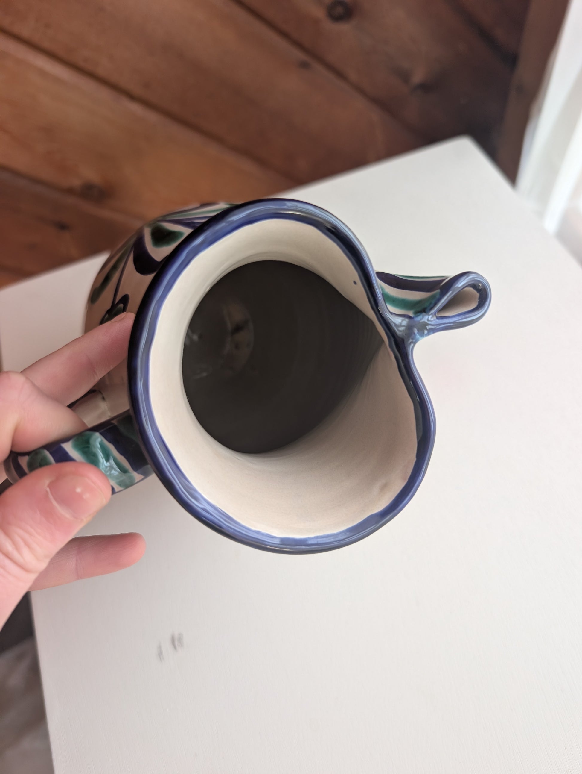 Adorable vintage ceramic hand-painted Sangria pitcher. Spanish Sangria Pitcher with Blue and Green Pomegranate Design