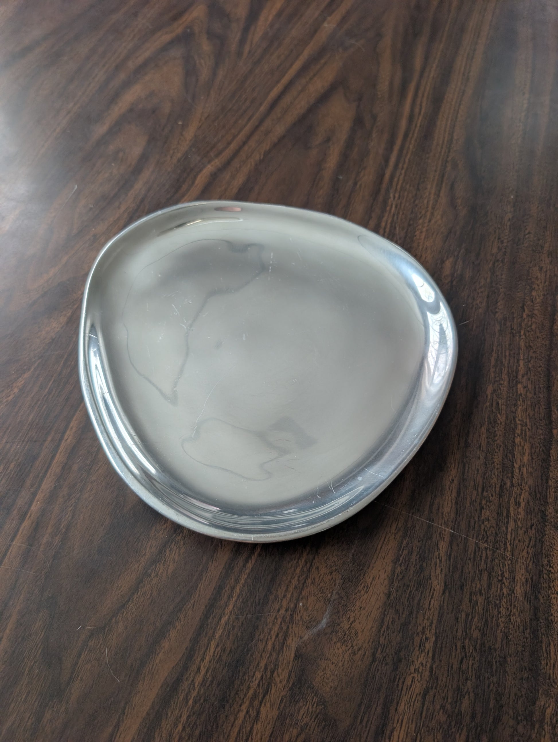 Vintage MCM Nambe #525 abstract shaped plate. Beautiful design. Some light scratches