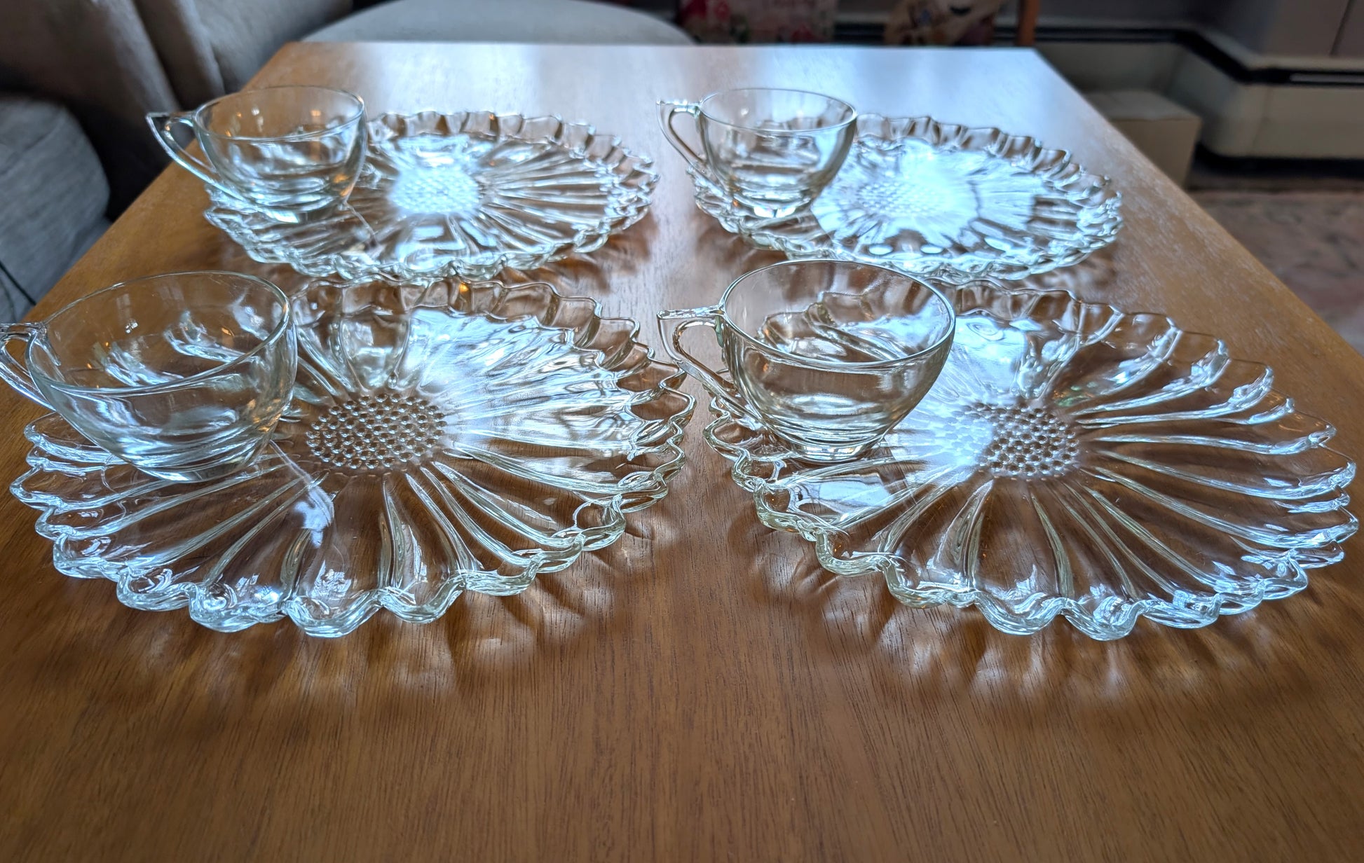 New Vintage Colony Glass Daisy 8 Piece TV Set