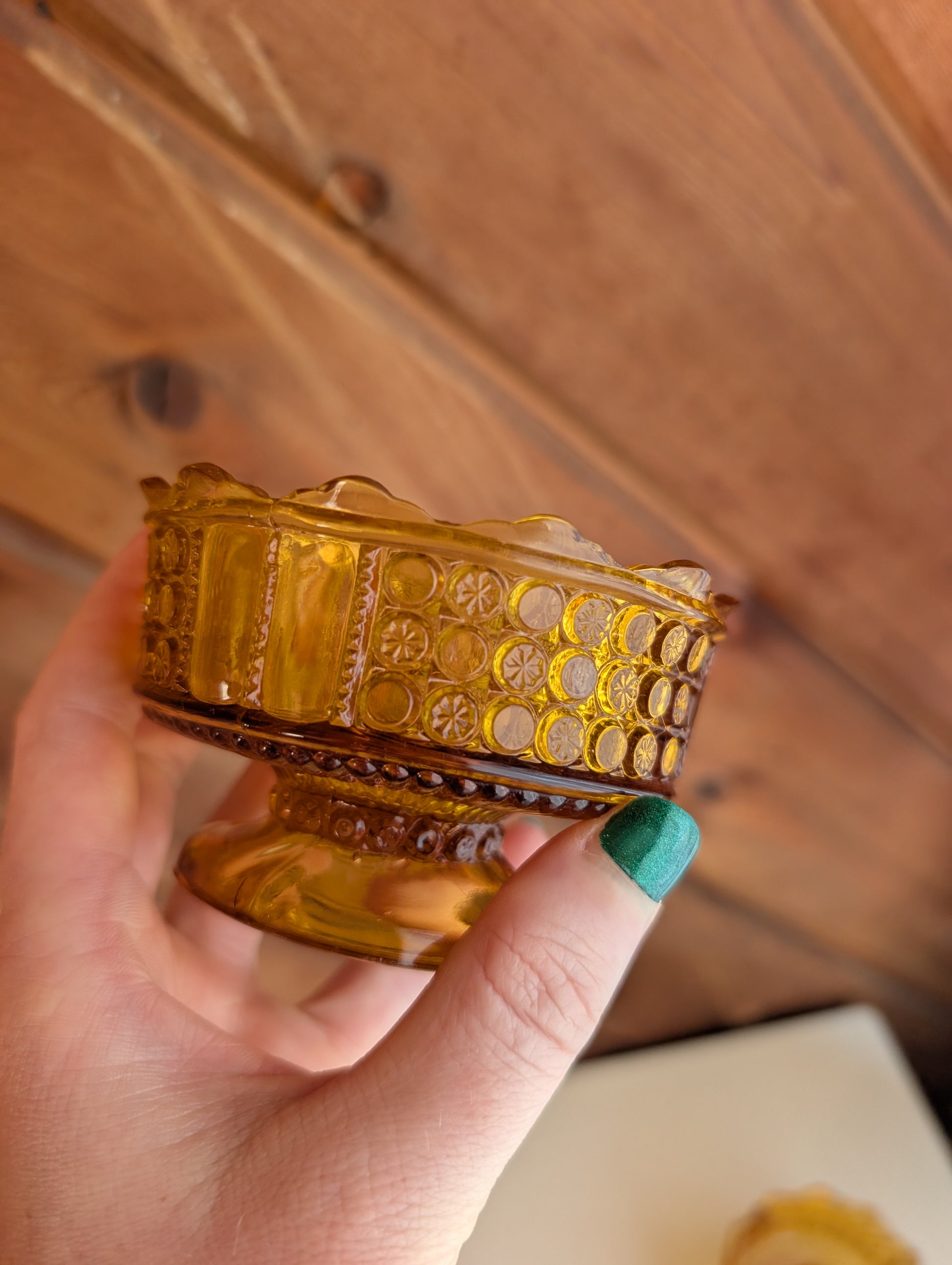 Pair of Three Panel Amber Small 4" Bowls Richards & Hartley Glass Early American