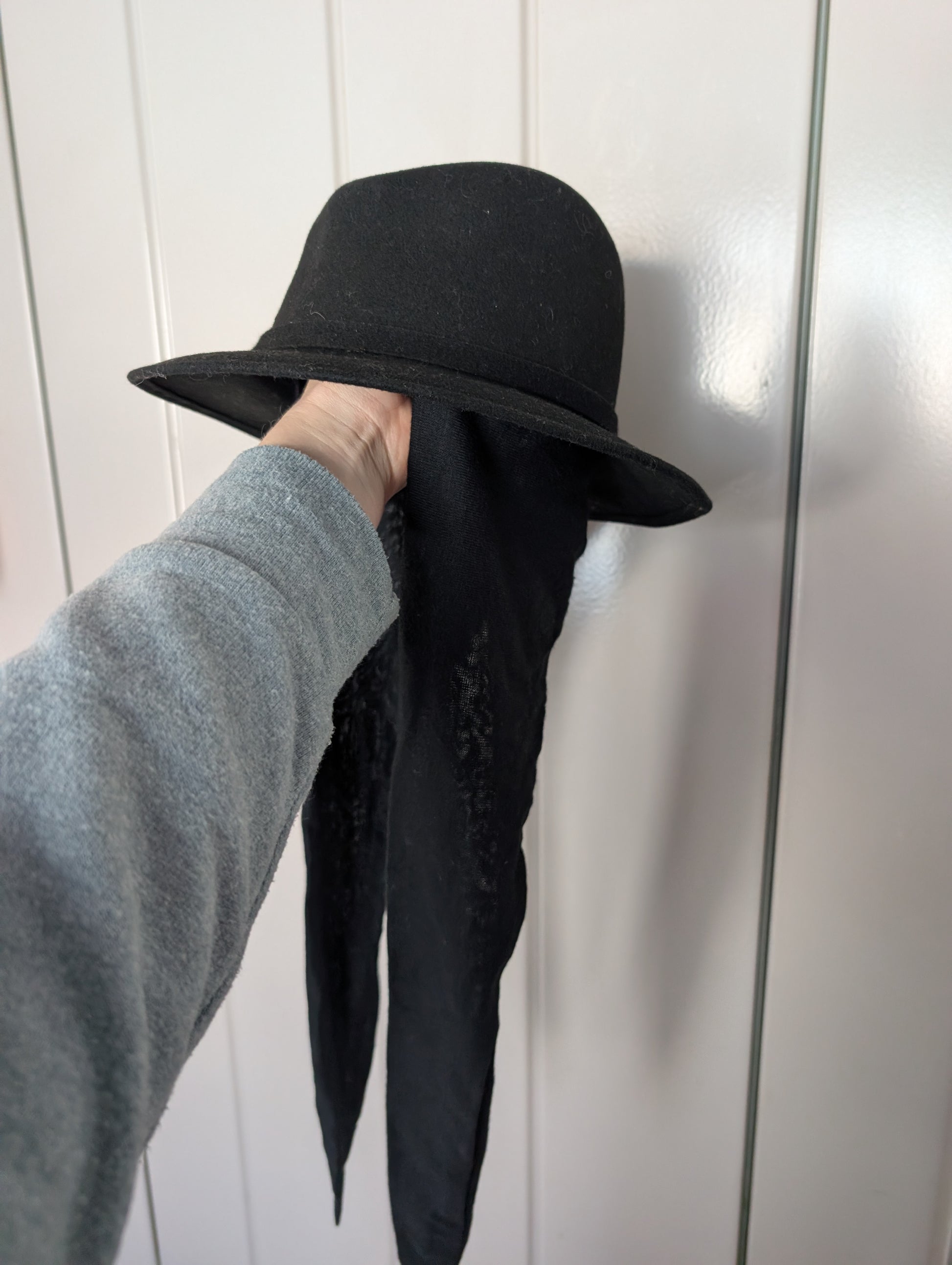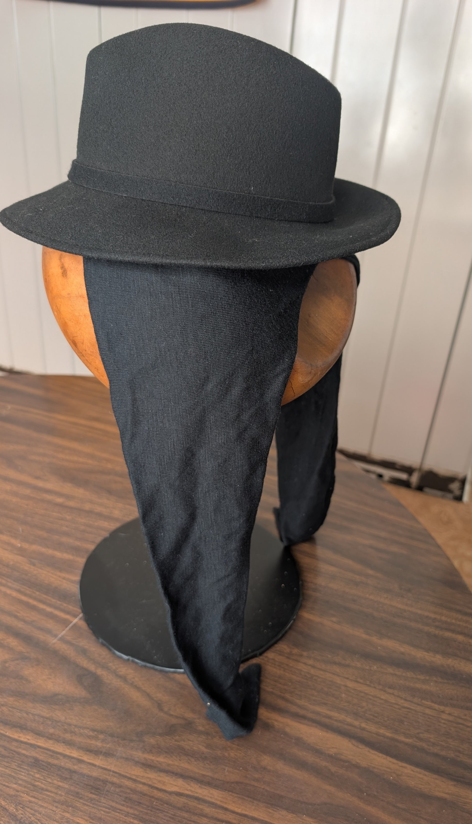 Vintage Wool Peachfelt Black Hat with Scarf in Wilby Hatter Box Lord & Taylor