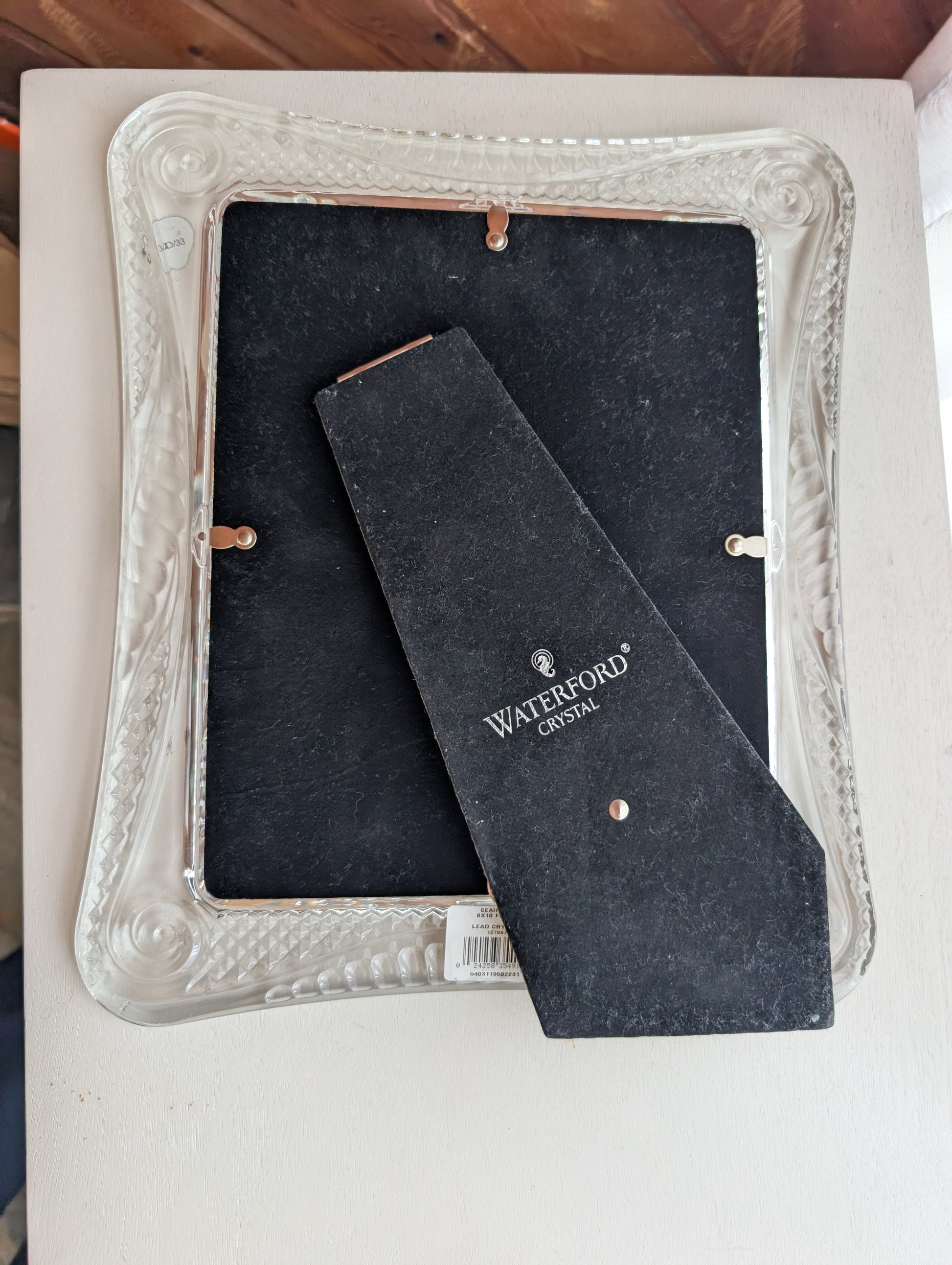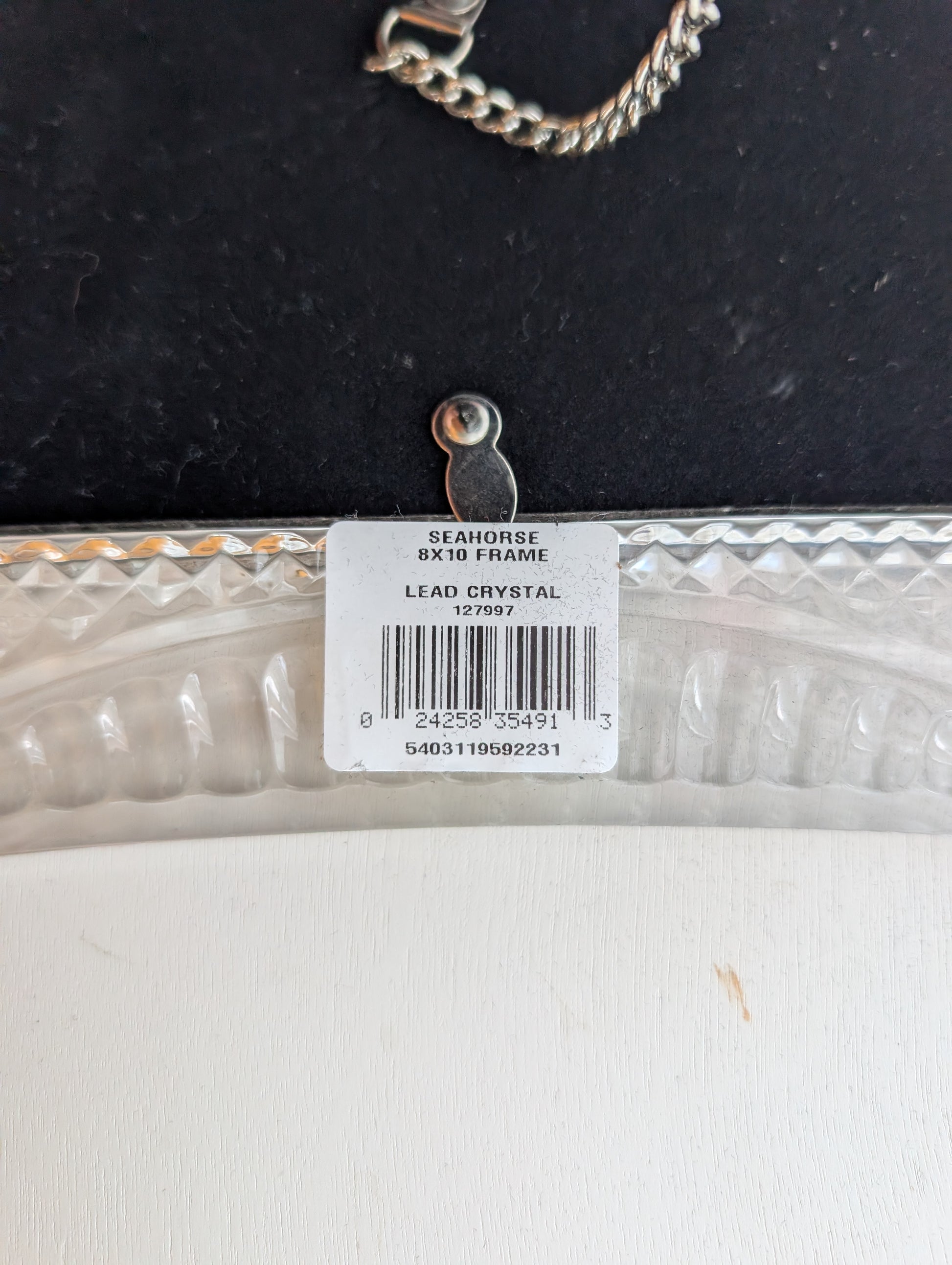 New Waterford Portraits Crystal Seahorse 8 x 10 Lead Crystal Picture Frame with original box. Box has some damage and tape on it but the frame has never been used. Model #127997